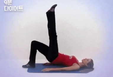 1단계: 누워서 무릎을 세우고 허리가 뜨지 않도록 유의합니다.